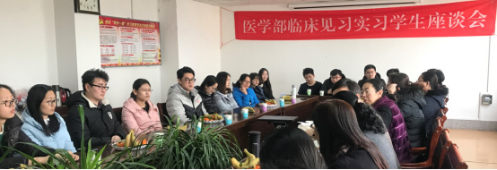 在与同学们座谈交流中,参与座谈会的老师们细心倾听、认真解答同学们提出的问题,并承诺全力解决同学们提出的问题,并采纳同学们提出的建议,医学部和各临床医学院将采取积极措施为广大见习生提供一个更加舒适的员工与生活环境。