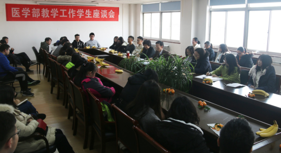 在随后的2个半小时的时间里,座谈会气氛热烈,同学们畅所欲言,就课程学习、临床见习、教师授课、期末考试等方面存在的问题,特别是个人的学习习惯、学习方法、影响学习的主要因素,与医学部领导、各临床医学院老师们进行了充分交流。