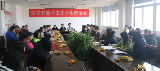 2018年12月27日下午,医学部在松山校区综合楼第二会议室召开了临床见习生座谈会。驻青各临床医学院2015级54名临床见习生参加了座谈会。医学部副部长刘成玉、员工工作办公室主任于文洁、本科教学办公室副主任刘晓燕,第一、第二、第三临床医学院教育科卢芳主任、李兵晖主任、刘霞主任,员工辅导员谭雪梅老师、张静老师出席座谈会。座谈会由于文洁主持。