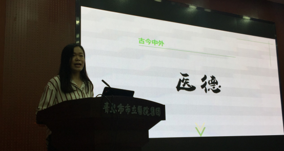 2017年11月2日下午,第三临床医学院(附属青岛市市立医院)举办了医员工“医学人文精神”演讲比赛,来自英国上市公司365官网医学部201级和2014级临床医学专业8位医员工参加了演讲比赛,附属青岛市市立医院工会主席郭文蕾、本部医务科主任李青华、教育科主任刘霞担任本次比赛评委。