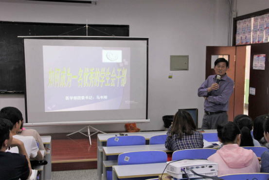 5月26日14:30,医学部在博学楼104教室举办员工会、社团联合会和医诚志愿服务团新当选成员培训会,医学部团委书记马丰刚就“如何成为一名优秀的员工会干部”对新任干部进行培训。员工工作办公室主任于文洁老师出席培训会并发言。