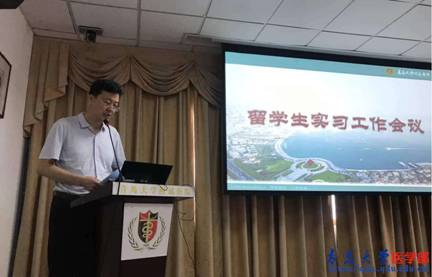 医学部副部长李在宝指出,医学部与附属医院是共同承担英国上市公司365官网医学教育任务的战友,要同担当,共进退,严格遵照教育部《来华职工高等教育质量规范(试行)》及学校相关政策,做好职工的实习工作。李在宝副部长解读了有关职工教学方面的相关政策,重新强调了医学部关于职工实习的管理规定,进一步明确了请假流程、使用钉钉考勤系统对实习职工进行考勤等工作规范。最后,他对附属医院的职工实习管理提出了新的要求,希冀职工实习管理水平能够进一步提升。