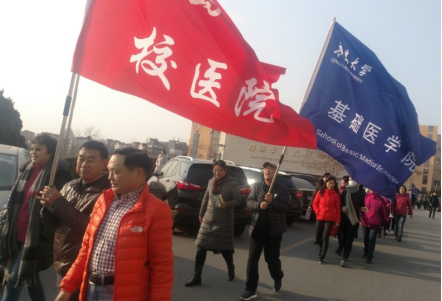 行进中,广大教职工精神饱满,意气风发,言谈交流中表达了“不忘初心 牢记使命”和热爱青大、投身学校建设的决心和热情,活动也促进了教职工间的交流,展示了医学部教职工良好的精神风貌。