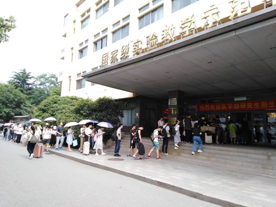 7月5日,阳光灿烂、清风送爽,医学部2019级临床医学、口腔医学硕士专业学位研究生在博雅楼进行新生入学报到。本年度医学部共招收临床医学、口腔医学硕士专业学位研究生434名。当天共有430名新生办理了报到手续。7月8日这批新生将正式开课。