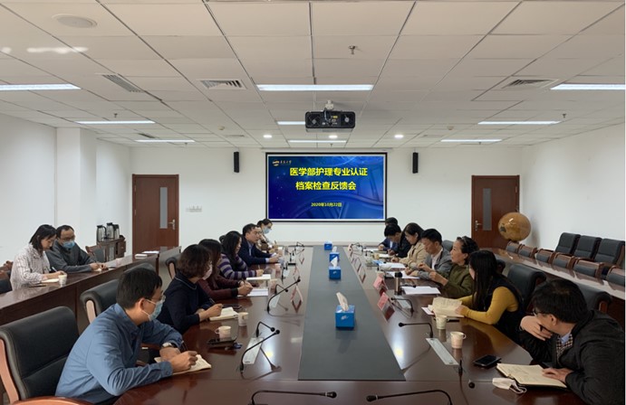 10月22日上午,医学部在浩园医学教育综合楼A座215会议室召开了护理专业认证第一次档案检查反馈会。医学部教学督导委员会主任委员刘成玉、督学杜卫、护理学院经理王爱敏、医学部部长助理李冰以及护理学院、公共卫生学院、基础医学院、药学院分管教学副经理参加,本科教学与职工管理办公室主任王飞主持。