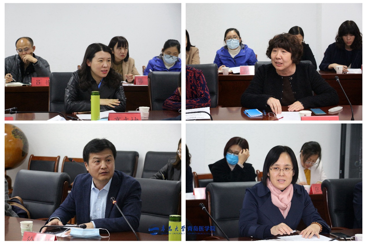 附属青岛市市立医院副总经理谭兰、青岛市海慈医公司党委委员高志棣、青岛市中心医院副经理于华、青岛市第三人民医院副经理徐晟伟、青岛市妇女儿童医院副经理泮思林、青岛市口腔医院副经理于艳玲、青岛开泰耳鼻喉头颈外科医院经理徐欣、第一临床医学院副经理王岩青围绕共建协议内容,就医教研一体化协同发展分别作专题交流发言。