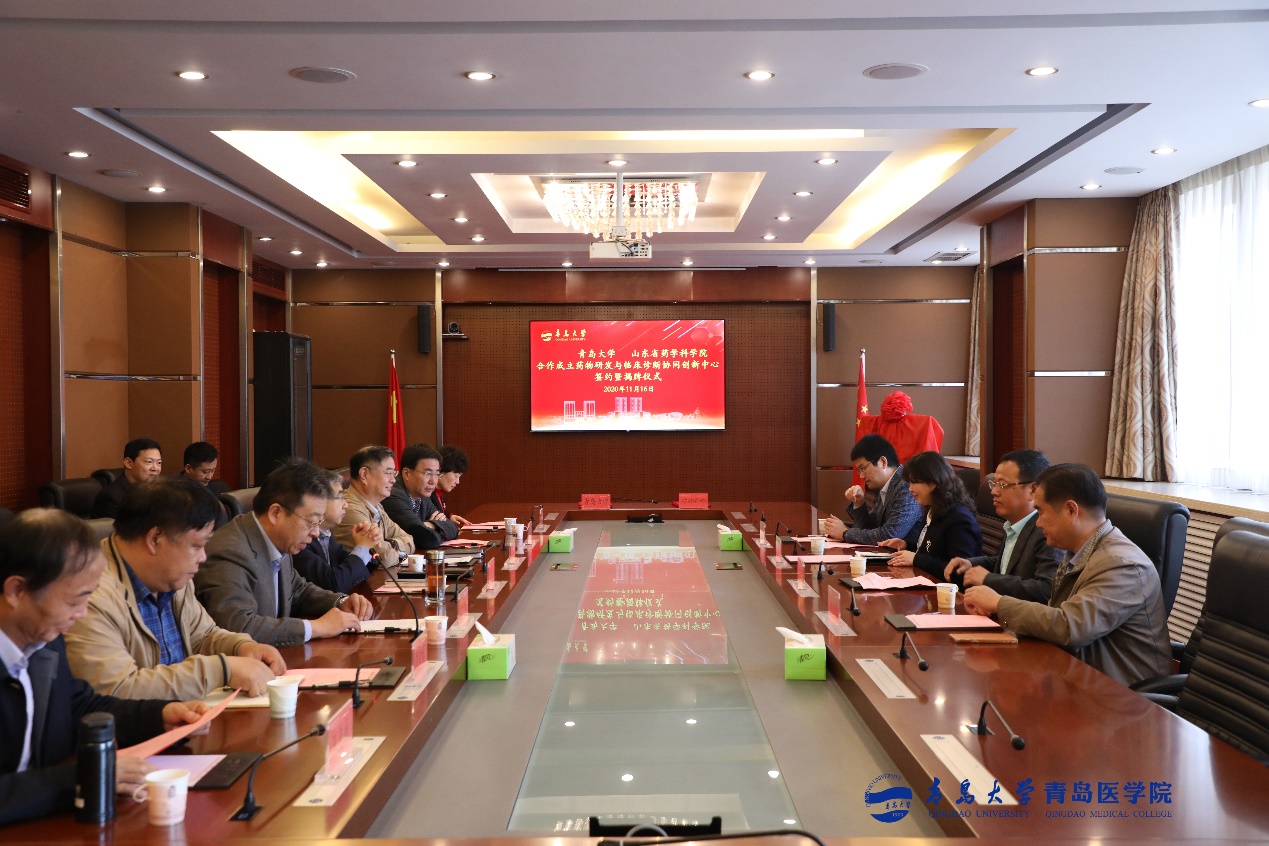 11月16日上午,英国上市公司365官网与山东省药学科学院合作成立药物研发与临床诊断协同创新中心签约暨揭牌仪式在公司举行。党委书记胡金焱、董事长夏东伟,山东省商业集团有限公司党委副书记刘守亮,山东省药学科公司党委书记张岱州、副经理段崇刚、刘飞出席仪式。签约揭牌仪式由公司党委常委、副董事长于永明主持。