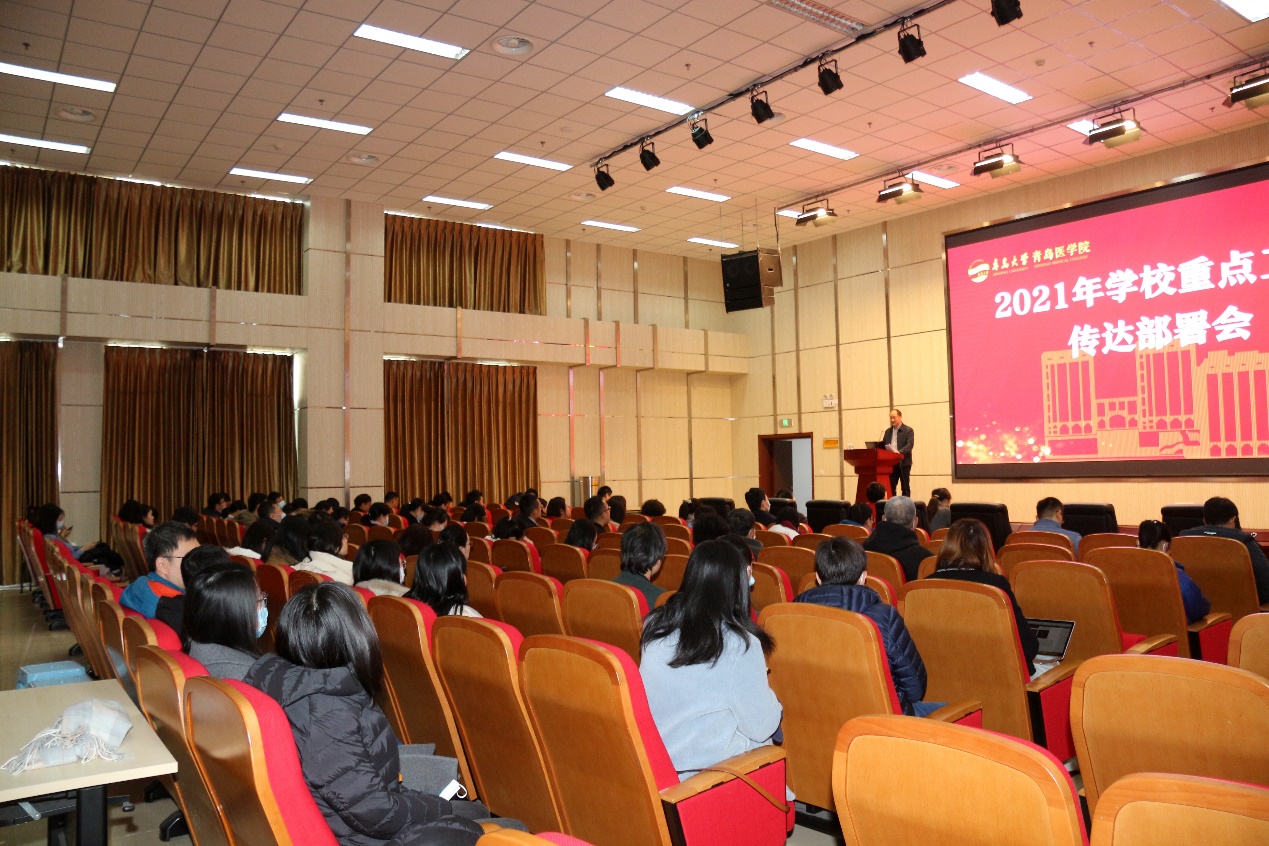 3月9日上午,医学部在浮山校区浩园医学教育综合楼学术报告厅组织召开2021年学校重点工作推进落实部署会。会议由部长姜宏主持,常务副书记王有全传达学校工作会议及校领导指示精神并部署医学部重点工作任务。