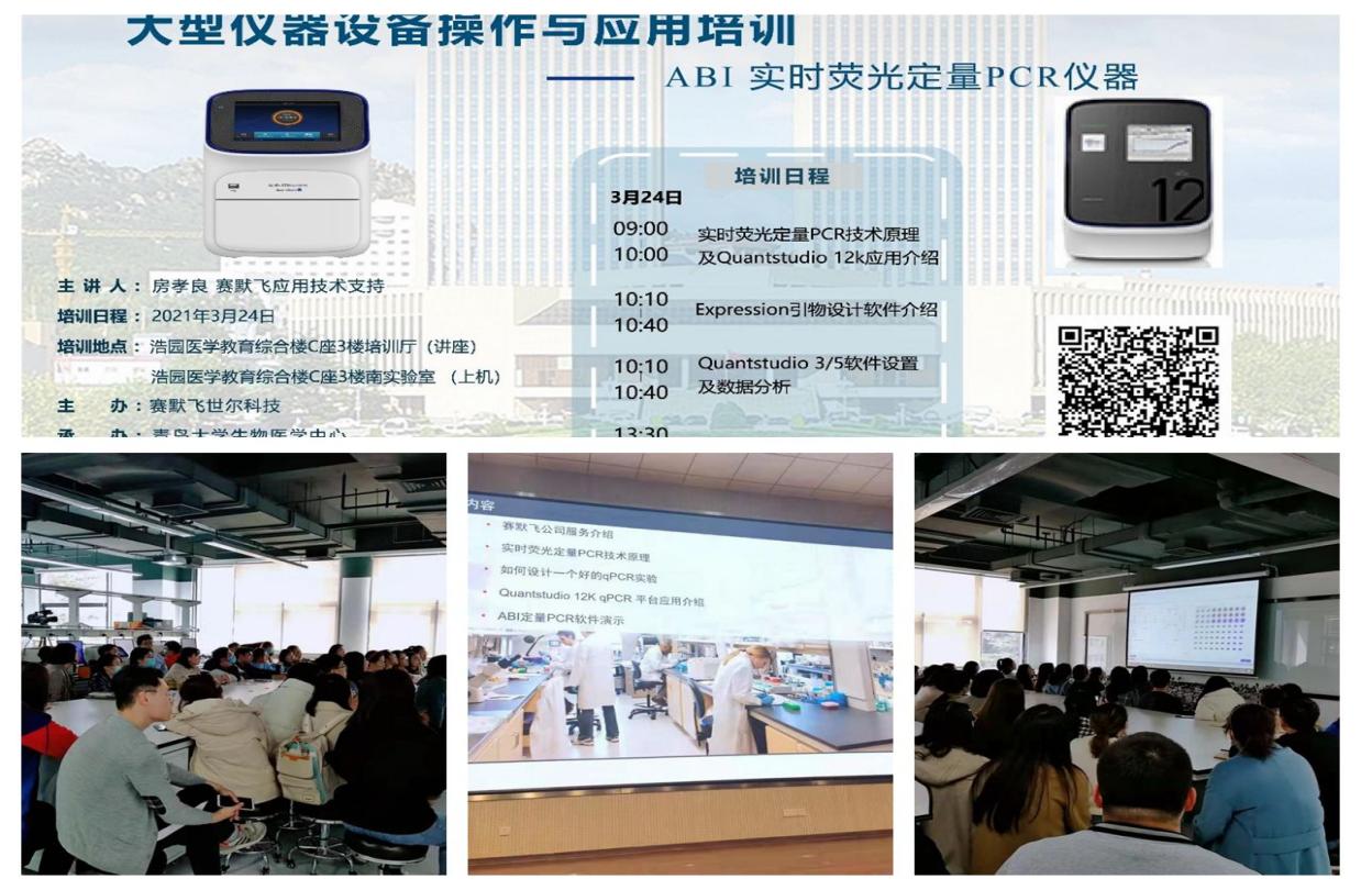 3月15日-30日,先后举办了Biacore T200 分子相互作用仪、ABI实时荧光定量PCR仪、Leica STELLARIS 5快速超高分辨率共聚焦显微镜、正倒置荧光宽场显微镜等四场大型仪器设备操作与应用培训。来自英国上市公司365官网各学院、青岛市各医院、青岛市各科研院所等多家单位的600余名师生学员参加了培训。