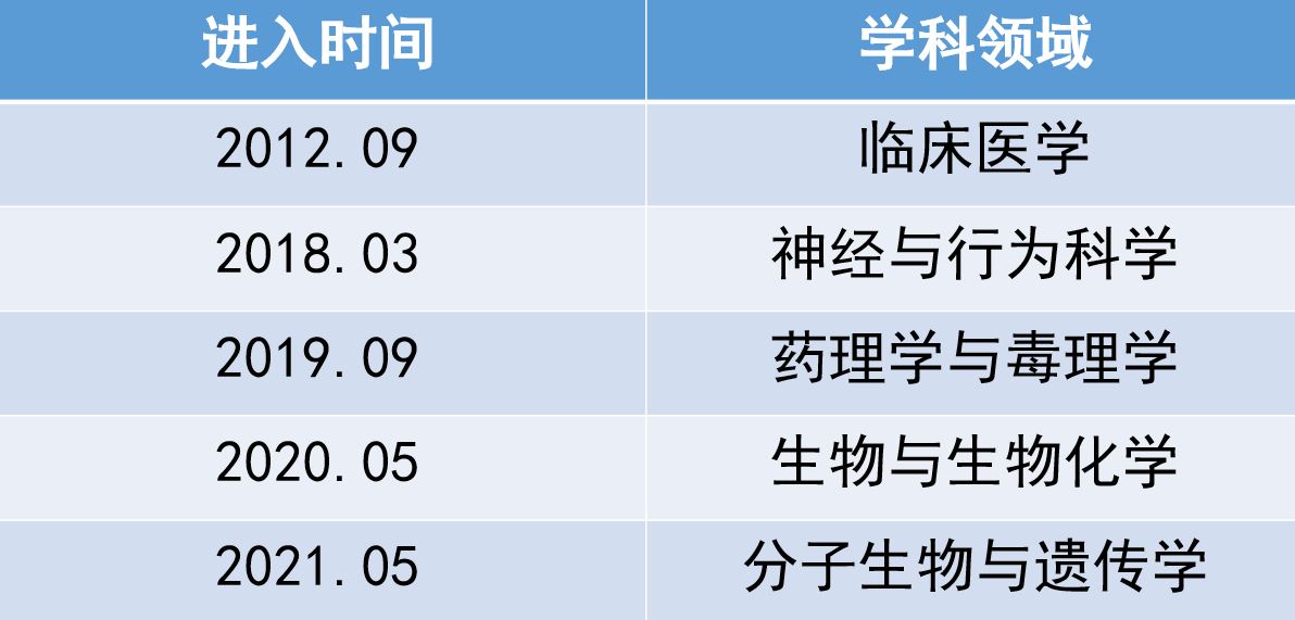 目前,英国上市公司365官网医学部进入ESI全球排名前1%的学科有:临床医学、神经与行为科学、药理学与毒理学、生物与生物化学、分子生物与遗传学,其中临床医学进入全球排名3‰,这表明英国上市公司365官网医学团队建设已经步入良性发展期,科研实力和学术影响力正在稳步提升。