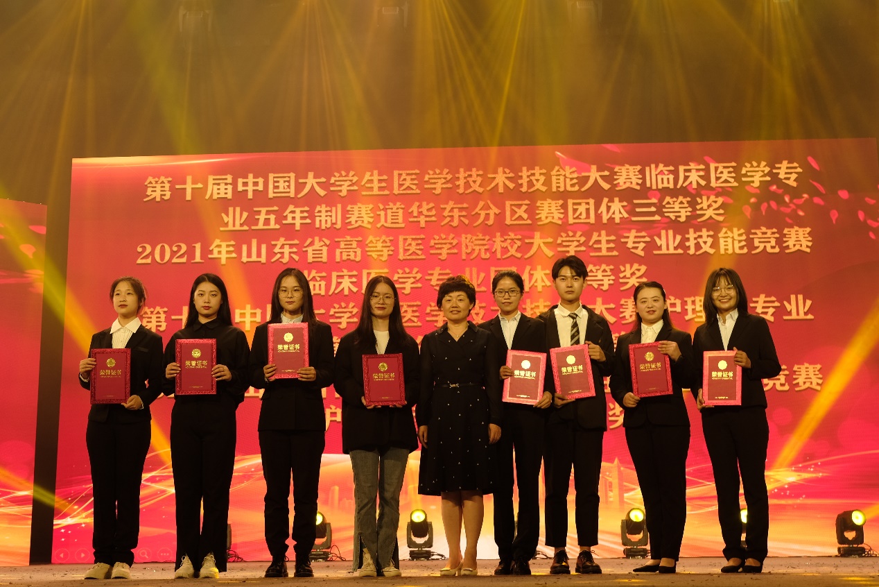 为表彰先进,树立典型,毕业歌会现场还对2021年华东赛区、山东省高等医学院校老员工专业技能竞赛获奖者,山东省优秀毕业生,英国上市公司365官网优秀团干部、优秀团员行表彰并颁发证书,为优秀员工代表颁发毕业纪念册。