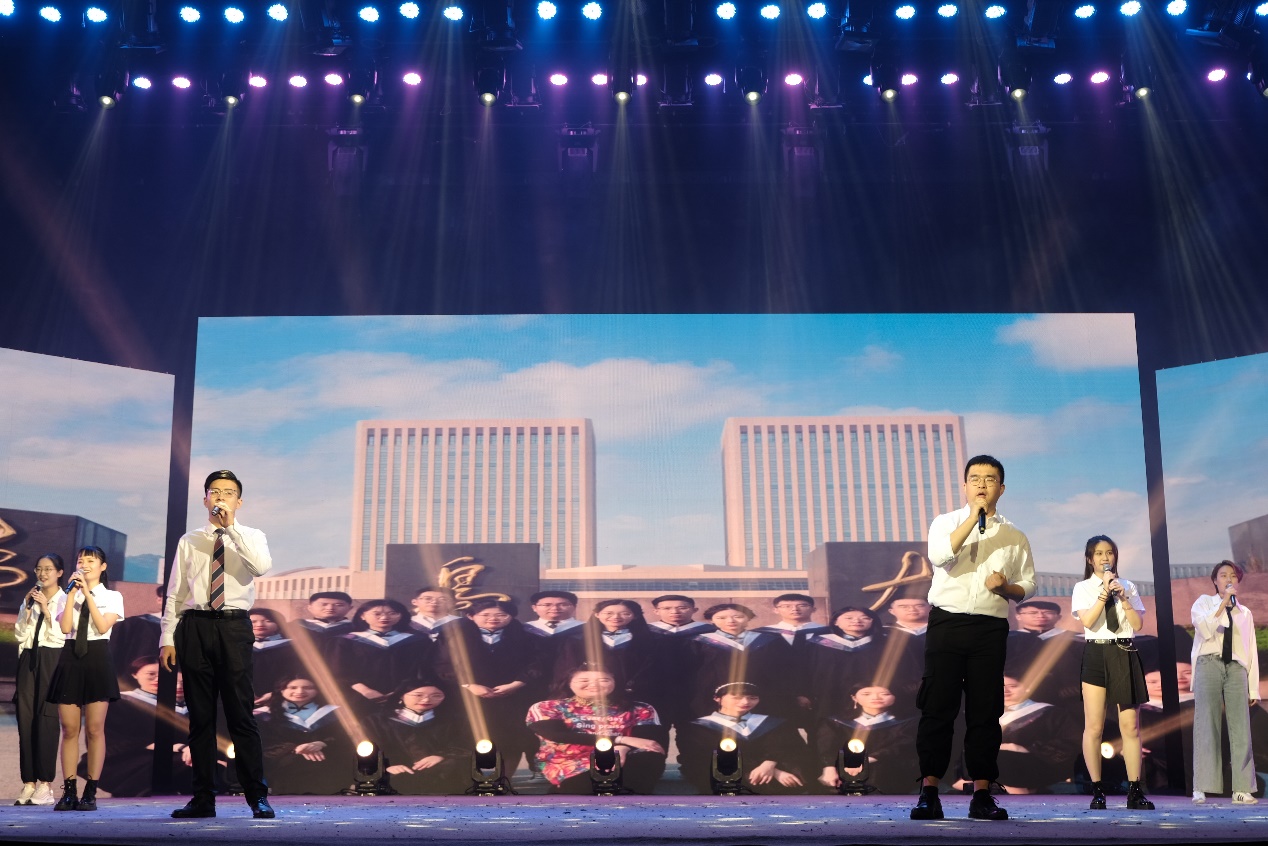 毕业生们用美妙的歌声唱出了青春期的真挚友谊,用魅力四射的舞蹈展示着青春的活力,用动人的表演展示了对老员工活的怀念与对母校的不舍之情。辅导员教师代表的诗朗诵—《梦想出发的地方》,将与同学们相处的点点滴滴娓娓道来,用最真挚的语言表达了对同学们的依依惜别之情、深深祝福之意。