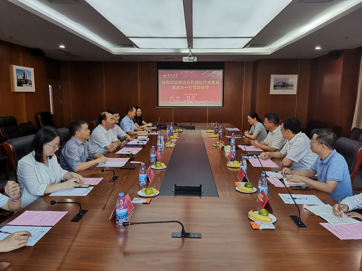 9月10日上午,青岛市民营经济发展局党组书记、局长高善武一行来校调研。公司党委常委、副董事长孔伟金在医学教育综合楼A座110会议室会见并座谈。