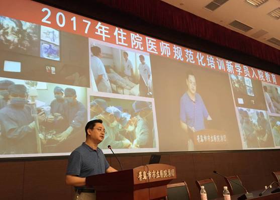 迎着入秋以来的凉爽,2017届规培学员入院教育在东院区科教大楼学术厅盛大开幕,第三临床医学院领导应邀出席与广大学子亲切会面,分别由管军副总经理、谭兰副总经理对新入院的规培生给予希冀及深切的问候,并强调“住培”是一件“苦差事”,但却足以磨练意志,切实提高医师临床能力和岗位胜任力,也是成就精诚大医的必经之路。第三临床医学院(附属青岛市市立医院)作为一个拥有百年历史积淀,集医疗、教学、科研为一体的现代化诊疗中心,相信各位学员能够在此学有所获,劳有所得。