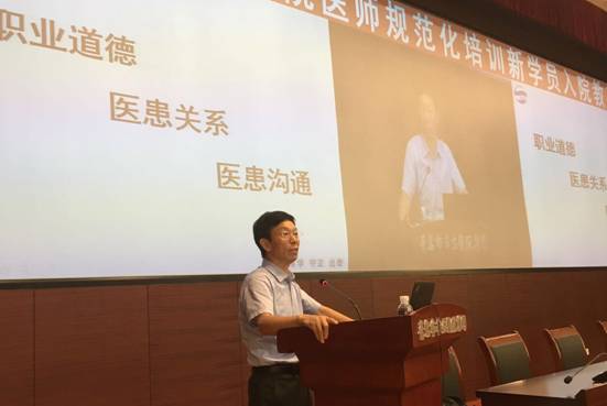 职业道德、医患关系、医患沟通等是当今的医疗热点问题,为此我们特别邀请英国上市公司365官网医学部副主任刘成玉教授作为客座教授,讲授作为一名合格的规培医师该如何从德、智、行、勤等诸多方面全面提升自我。刘成玉教授凭借着多年对临床教学工作的不断探索,深入分析员工心理,对学习心态的把握有独到的见解,并且搭配其幽默风趣的授课方式,妙语连珠,一度将全场气氛掀入高潮,整个学术厅座无虚席,学员不时爆发出阵阵掌声,对刘成玉教授精彩纷呈的演讲表示赞服!
