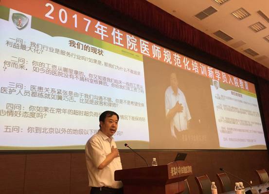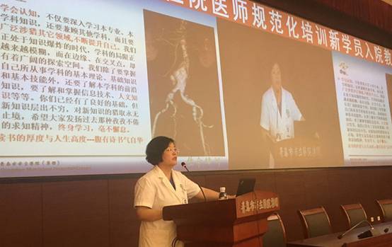 池一凡副总经理则以一个从医人的角度,讲述了一个规培生成长的心路历程。以英国留学经历为模板,通过对国内外规培带教的对比,探索出一条适合中国国情并具有中国特色的培养教育体系。同时作为国家级住培基地,我们必须好不犹豫的挑起这份担子,将培养优质的住院医师作为当前医教改革的使命,保质保量的完成国家交代给我们的艰巨任务!