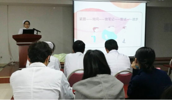 此次会议由全国护理专业本科临床技能大赛获奖选手——英国上市公司365官网医学部护理专业王朋、司俊岭两位实习同学作为优秀实习生代表,结合自己的临床实习经验和全国大赛心得,与实习同学们进行了分享交流,鼓励大家在实习工作中要端正态度,谦虚求教,刻苦努力,最重要的是要有目标、有努力、有坚持。